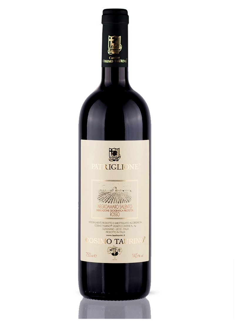 Patriglione Negroamaro Salento IGP – Cosimo Taurino: Il vino simbolo dell’Azienda, nato da vigne di Negroamaro di circa 80 anni allevate ad alberello nella Contrada Patriglione. Un pluripremiato vino da vendemmia tardiva, noto per aver dimostrato il potenziale di complessità, armonia e longevità dei grandi rossi del Sud Italia.
